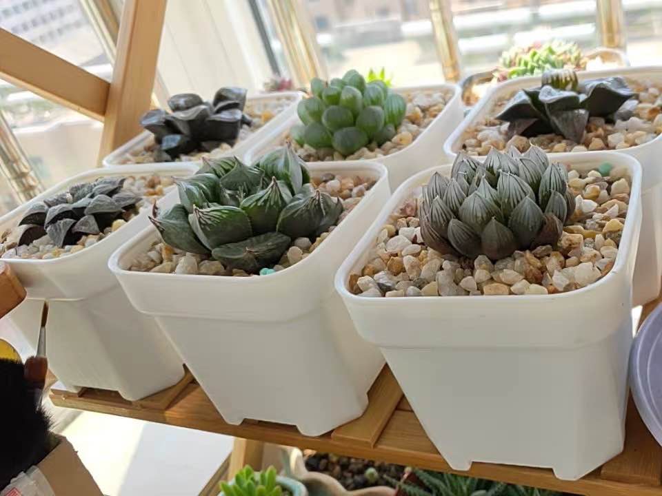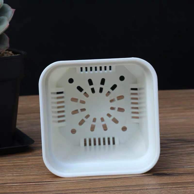 These square extra thick plastic pots in grow trays for nursery in succulents, germination or for small plant.